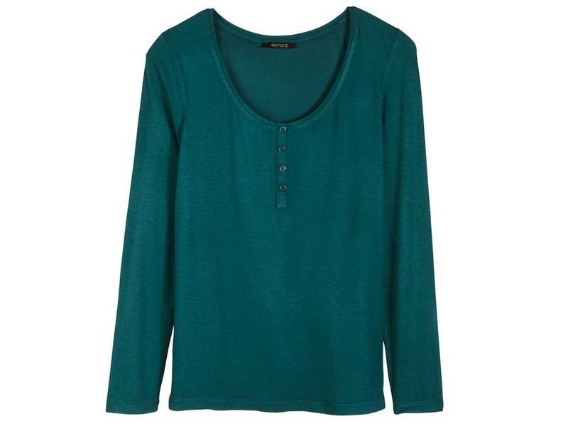 Реглан ESMARA® Thermoshirt Особенности: - Приятно носить благодаря теплой вискозной смеси; - Защитный слой воздуха сохраняет тепло на коже; - Оптимальная посадка благодаря эластану; - Горловина с круглым вырезом Материал: 55% акрил, 40% вискоза, 5% спандекс Размер S 36/38 Новый с бирками. Цвет изумрудный, соответствует каталогу.