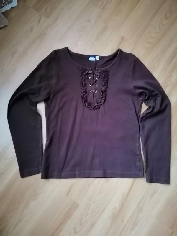 Симпатичная шоколадная кофточка, спинка 53 см, плечи 39 см, рукав 58 см, подмышки 44 см, низ 43 см.