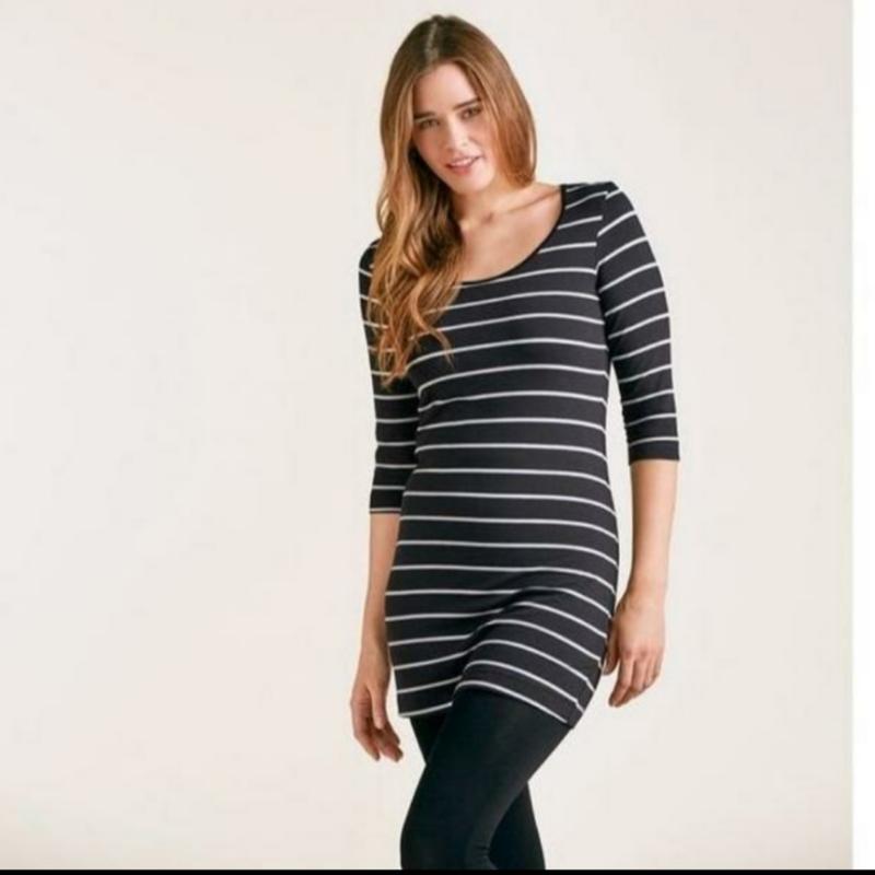 Женская туника от Esmara. Classic Basic - идеально подходит для объединения. Приятный комфорт при использовании хлопка. Оптимальная подгонка с эластаном. материал: 95% хлопок, 5% спандекс. Размер нем. указан XS(32\34). ПОГ 38см. ПОТ 34см. Плечи 34см. Рукав 40см. Длина от плеча 77см. Хорошо тянется, подойдёт и на S