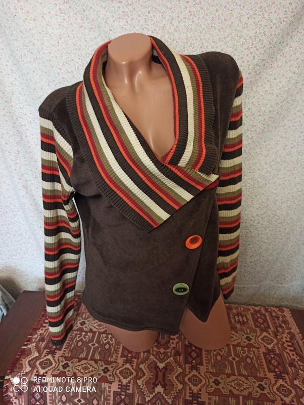 Без торга. Кофточка женская 46-48р. в отличном состоянии, если надо замеры скину, фото на теле нету, т.к. после родов маловато, поэтому распродаю свой гардероб)). Смотрите другие мои объявления. Могу переслать по предоплате, в Киеве можно встретиться на Теремках-2.