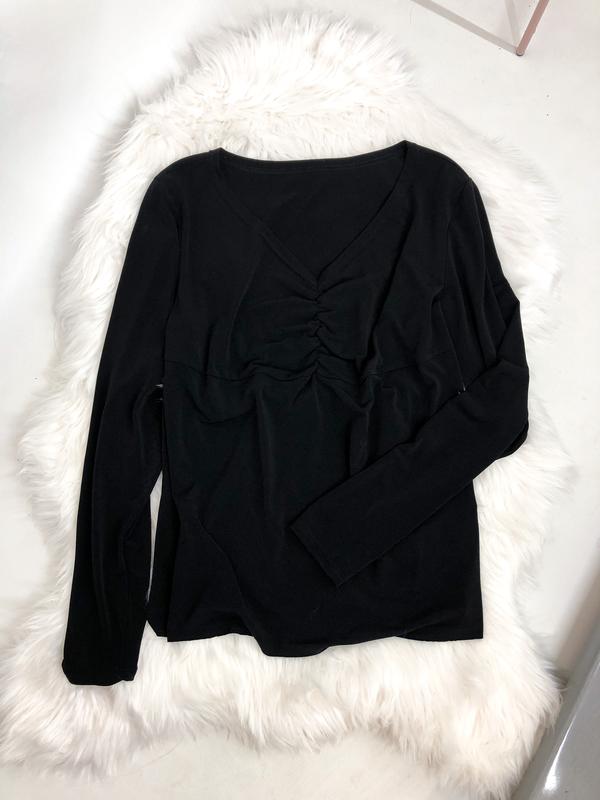 Базовий реглан, в ідеальному стані, стан нової речі, чорного кольору, спереду є зборочка, тканинка добре тягнеться, та приємна до тіла , якість-чудова! Розмір: XL/XXL