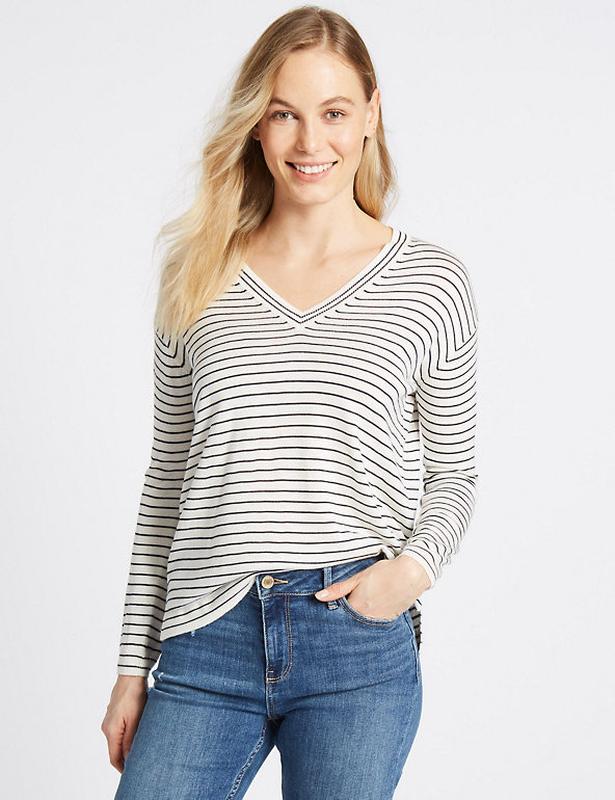 Лонгслив в полоску v вырез m&s