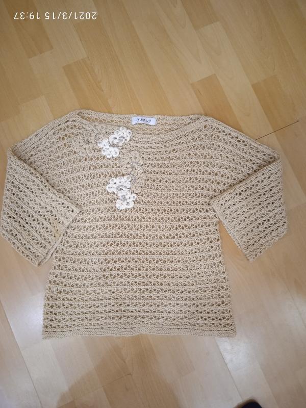 Красива блуза, макраме, тягнеться чудово.На 44-48 р приблизно Замеряю