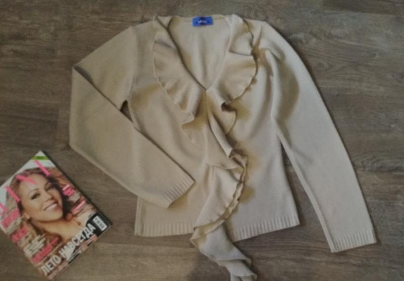 В'язана кофточка з рюшами бежевого кольору з тонкої нитки, більше підходить на період весна осінь. Виміри: довжина виробу 50см, напівобхват грудей 37см, напівобхват талії 32см, ширина по низу 35см, ширина по плечах 30см, довжина рукава 55см. Відправляю Новою поштою, Укрпоштою, Justin, відправка за рахунок покупця; передплата 100% на карту ПриватБанку. Повернення/обміну немає.