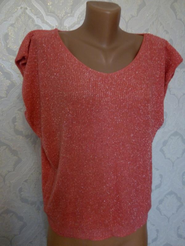 Шикарная топ-футболка с люрексовой нитью. На размер М. Оригинальная. Цвет глубокий коралл, очень красивый.Подходит под любой образ. Девушка в ней будет стильная, яркая красотка. Вещь действительно красивая и качественная. Покупала в дорогом бутике. Цену снизила, так что бы обладательница красивой вещи была довольна и с радостью носила. Все замеры по запросу.