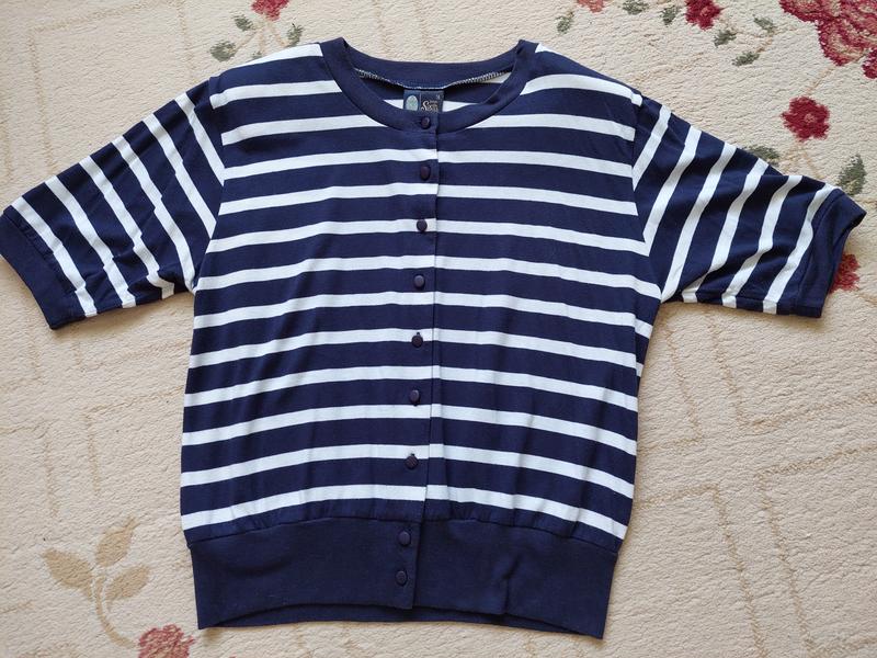 Лёгкая хб кофточка, с коротким рукавом на пуговичках, внутри есть плечики. Тянется Плечи 42 Пог 47 Пот 44 Поб 40 на резинке Длинна изделия 51