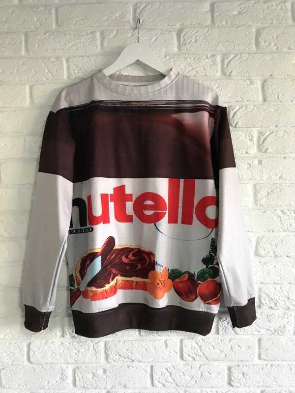 Модный свитшот ,кофта с принтом Nuttella Фирма : scruffy swanks В идеальном состоянии Цена новой 2000грн Размер: М Oversize Замеры : ПОГ 57 см Длина 66 см Рукав 58 см
