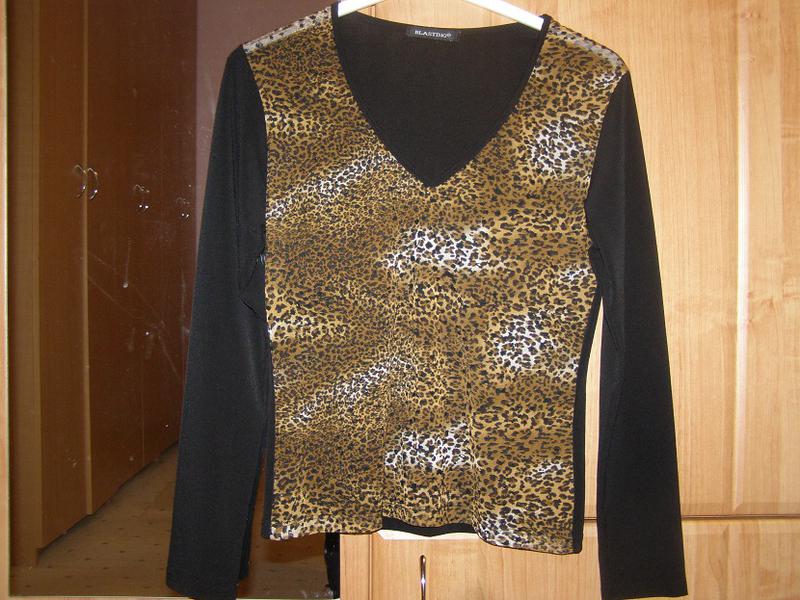 Леопардовая кофта-лонгслив марки "blasting ". Тонкая ткань, тянется. Спереди леопардовый принт. Ткань с бархатными пятнышками. Красивый вырез. Размер 44 наш украинский, или 36 евро, S-ка. Без дефектов.
