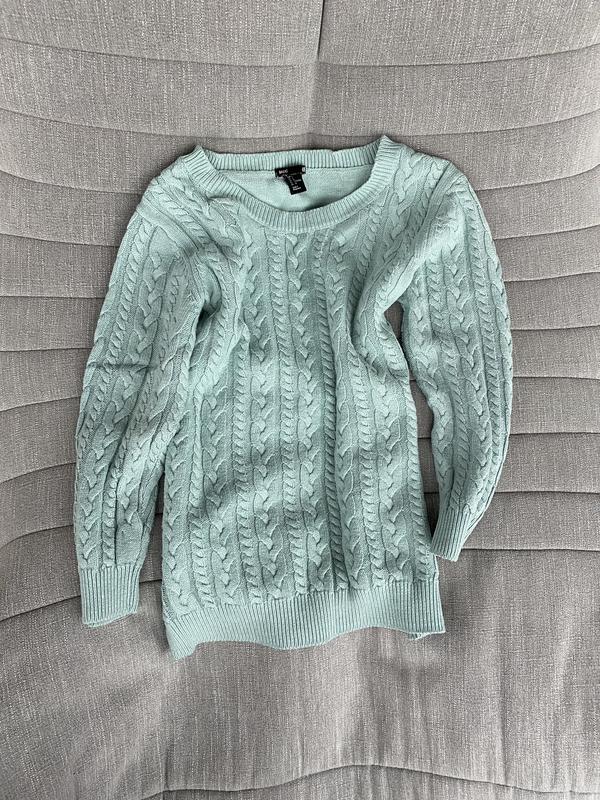 Размер по бирке Л, но маломерит на С-М состояние отличное, дефектов нет Бирка срезана, на ощупь похоже на коттон+эластан, возможно в составе есть шерсть так как очень тепленький Цвет в жизни как на последнем фото - пастельный мятный Замеры: ПОГ 43 см Длина по спинке 57 см Рукав 3/4 (от плечевого шва 44 см) Если необходимы другие замеры или доп фото, обращайтесь - с радостью подскажу. Отправка новой почтой или укрпочтой в день оплаты (если оплата была до 12:00) или на следующий день