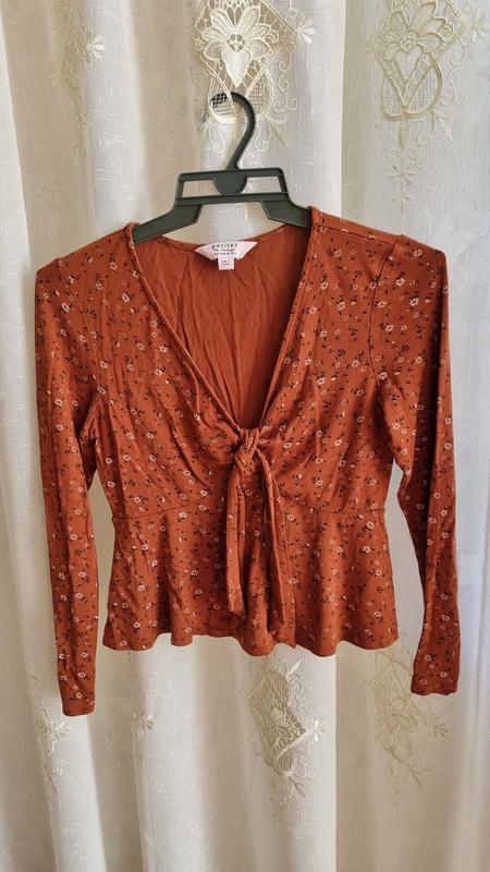 В ідеальному стані кофтинка, гарного шоколадного кольору із зв'язками на бюсті. На маленьку тендітну дівчинку. Склад: 97% віскоза, 3% еластан. Заміри: Ширина під грудю 31см Ширина плеч 36см Довжина рукава 52см Довжина виробу по спинці 42см. Відправляю Укр та Новою поштою. Працюю з безпечною оплатою та з повною оплатою на карту. Якщо виникли питання, звертайтеся відповім.