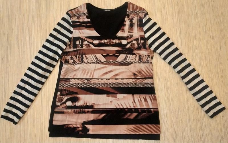 Стильная кофта. Рукав одинарная сеточка, торс двойная. Сзади на спине черная. Отлично садится на 42 размер европейский.