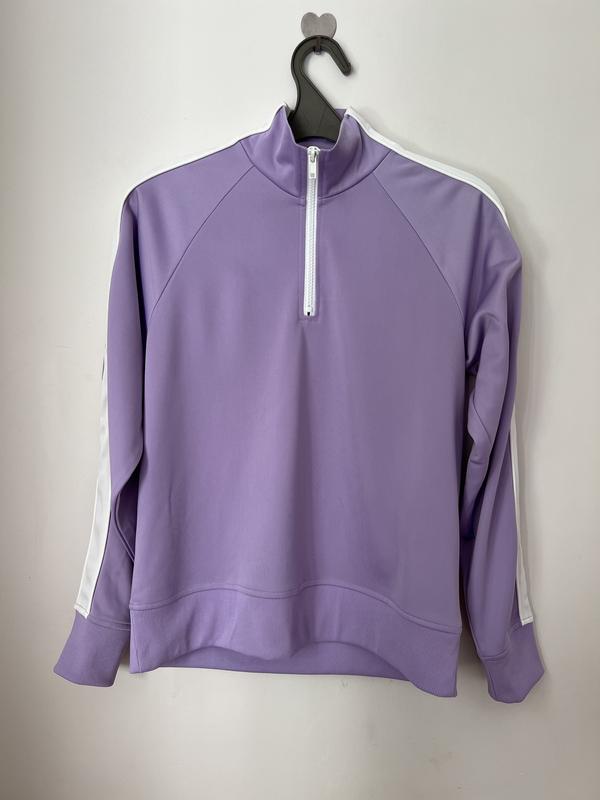Стильная олимпийка , мастерка Воротник стоечкой на змейке Плечевой шов спущен Крутой цвет Ткань аж блестит Идеальное состояние,сзади 2 маленькие точечки как прокол иголки ,совсем не видно Замеры Длина-59 П.о.г-47 Рукав от горловины -68 Под рукавом -53 П.о.низ-45