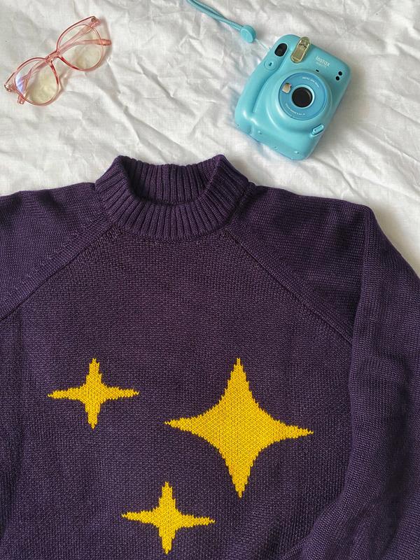 Атмосферний темно-фіолетовий светр щільної в'язки 💜 Тепленький та затишний з в'язаними зіроньками ✨ Розмір: L
