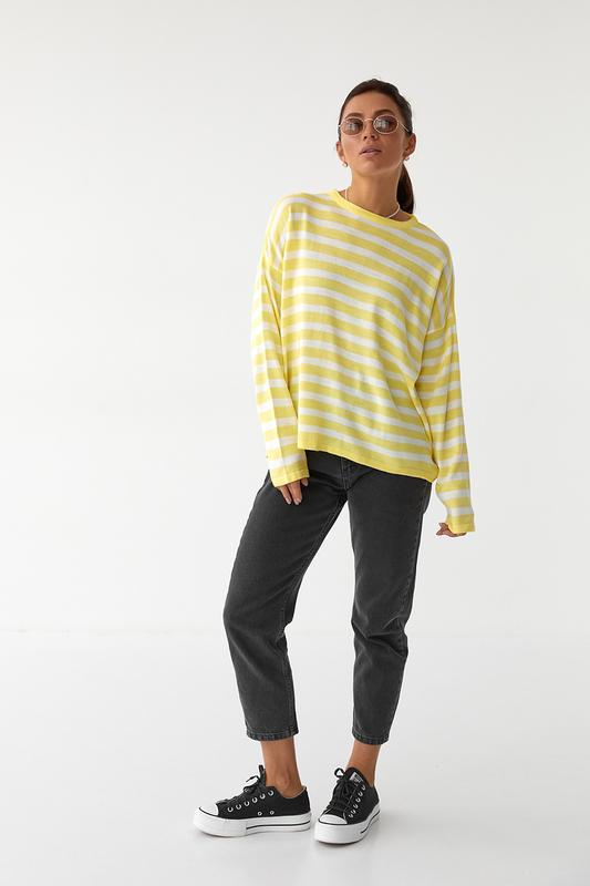 Ця смугаста жіноча кофта ідеально підійде для осінньо-весняного періоду. Його м'яка тканина зігріє, подарує комфорт і стане альтернативою легким джемперам або тонким світшотам. Матеріал: в'язка Колір: салатовий,жовтий, чорний ,голубий,синій Розмір: єдиний