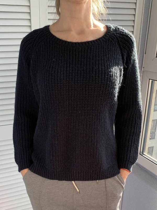 Тёплый свитер цвета джинс. Оригинальная вязка, за счёт того, что на спинке поперечная вязка, она длиннее и это смотрится круто. Смотрите также другие мои объявления, много брендовых вещей по доступным ценам