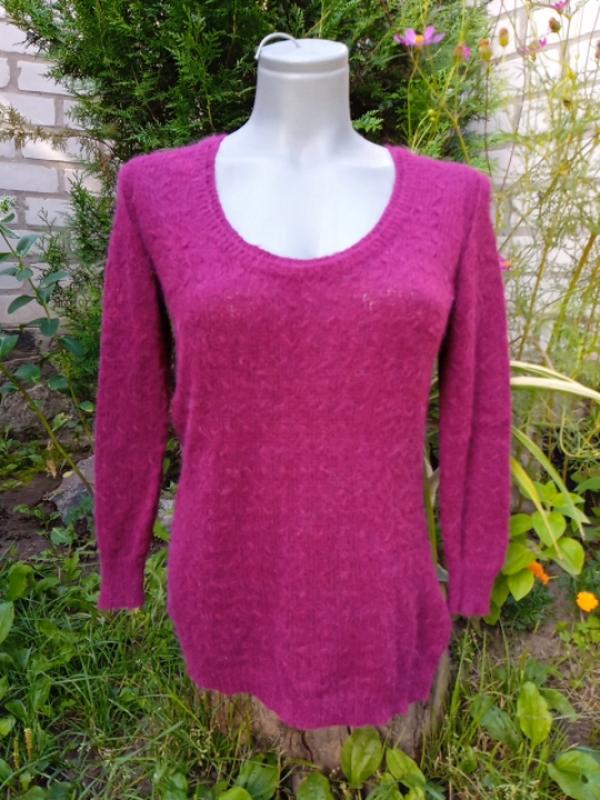 легкий, теплий ,гарний насиченого бурякового кольору, длина 63,пог 47, тягнеться до 60, рукав від шиї 61,по внутрі 35, плечі 38,ззаду на зав'язках дуже мило виглядає,стан ідеальний