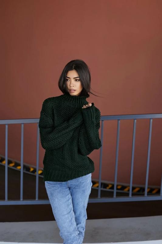 Параметры: Длина изделия от верхней точки плеча: UN=65 см Длина рукава от горловины: UN=75 см Тех. описание: Артикул: S070.4924 Коллекция: Hot Wear Категория: домашние / повседневные / городские/уличные Сезон: весна / осень-зима / демисезон Фасон: прямой / свободный Материал: плотная высококачественная вязка Цвет: темно-зеленый Горловина: воротник стойка Вид рукава: длинный, приспущенный Конструктивные элементы: спущенное плечо Комплектация: свитер Уход за вещами: ручная стирка до 30° Информация: Модель в универсальном размере. Подходит на параметры с S по XL. Обратите внимание!: Цвет изделия может отличаться, учитывайте цветопередачу камеры и монитора.
