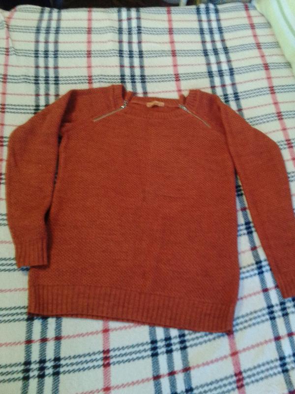 Вязаная кофта с двумя замочками. Тёплая. Ог44,Дл60, Рукав реглан 64/47. Теракот