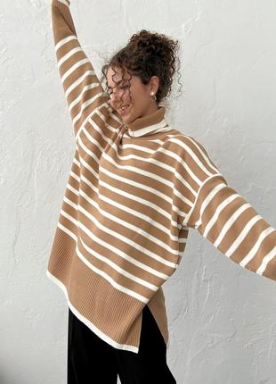 Светр під горло у смужку мокко