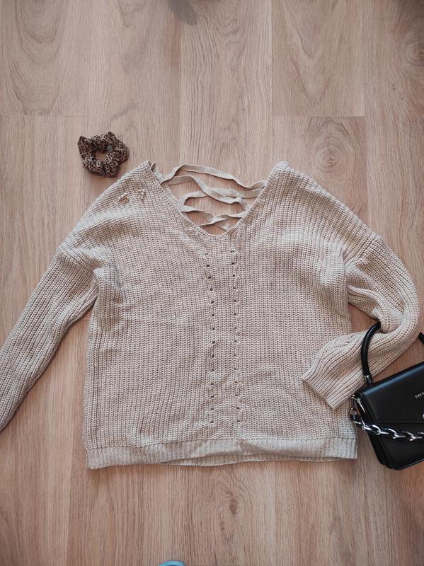 Теплий вільний светр, з гарним вирізом на спині, на розмір M - L