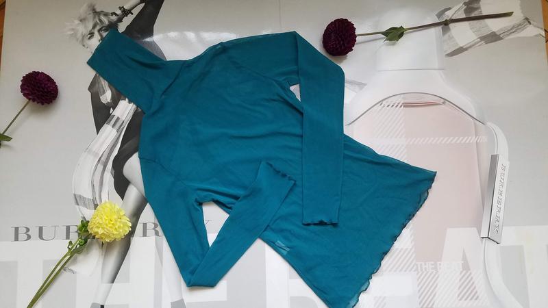 Бірюзова прозора кофтина Moderato з високю горловиною. Розмір підійде на S , М. Довжина: 61 см. Довжина рукава: 60,5 см. Півобхват в грудях: 36,5 см. Півобхват в талії: 35 см.