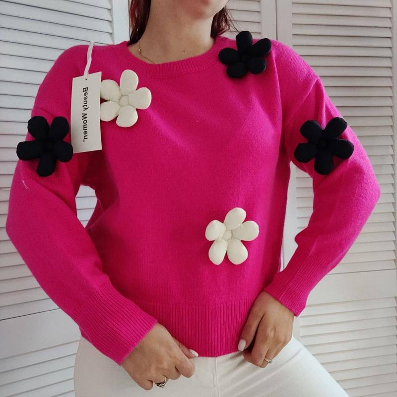 Стильний светрик з об’ємними квітками * Розмір: Довжина-56 Ог до-130 * Ціна-1100 * Виробник Італія 🇮🇹