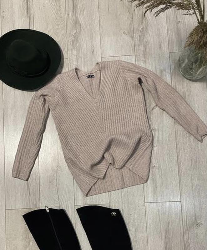 Фото На теле нет) замеры на фото)плотный,тягучий,рукава длинные ,вырез v-образный,вязка заводская в рубчик,свитер мягенький слегка приталенный,цвет беж с розовым оттенком) Подойдёт на с м европейский ориентируйтесь по замерам Следы носки незначительные на фото видно (не критично)в цене учтено / Продается как есть без возврата/ Плечі 29,5 см/ Пог 44-45 см: Рукав 52,5 см/ Довжина 56-58 см/ Знизу 45 см/ Пот 40-42 см/ Ансамбль из бежевого свитера и темно-зеленых широких брюк позволит составить интересный образ в расслабленном стиле. Опасаешься выглядеть слишком небрежно? Заверши этот наряд красными замшевыми оксфордами. С чем носить бежевый свитер женщине: Сочетание бежевого свитера и светло-коричневой юбки-миди с леопардовым принтом поможет выразить твой личный стиль и выгодно выделиться из серой массы. Черные кожаные босоножки на каблуке станут превосходным завершением твоего ансамбля. Бежевый вязаный свитер Светло-коричневая юбка-миди с леопардовым принтом Черные кожаные босоножки на каблуке Золотой браслет Золотая подвеска Сочетание бежевого свитера и светло-коричневой юбки-миди с леопардовым принтом поможет выразить твой личный стиль и выгодно выделиться из серой массы. Черные кожаные босоножки на каблуке станут превосходным завершением твоего ансамбля Бежевый свитер и белые джинсы скинни выигрышно впишутся в лук в непринужденном стиле. Создать модный контраст с остальными составляющими этого образа помогут коричневые угги.