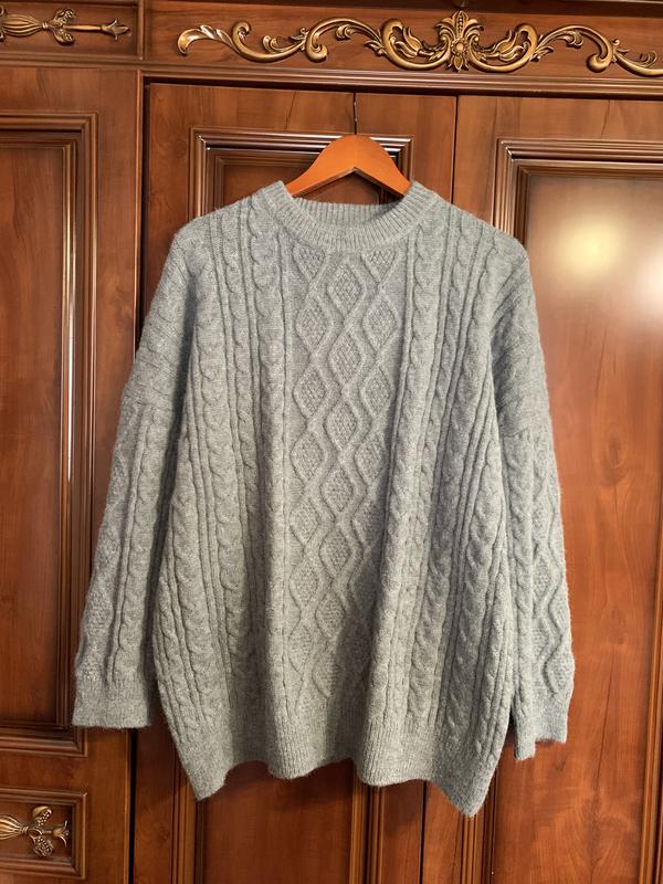 Светр вʼязка сірого кольору фасону оверсайз. Подовжений дуже теплий. Склад: вовна, поліестер. Не колеться, дуже м’ягенький. Є ще в кремовому кольорі. Хороша якість. Новий без бірки. Розмір L/XL Пог - 63 см Довжина рукава від горловини - 77 см Довжина светра - 78 см