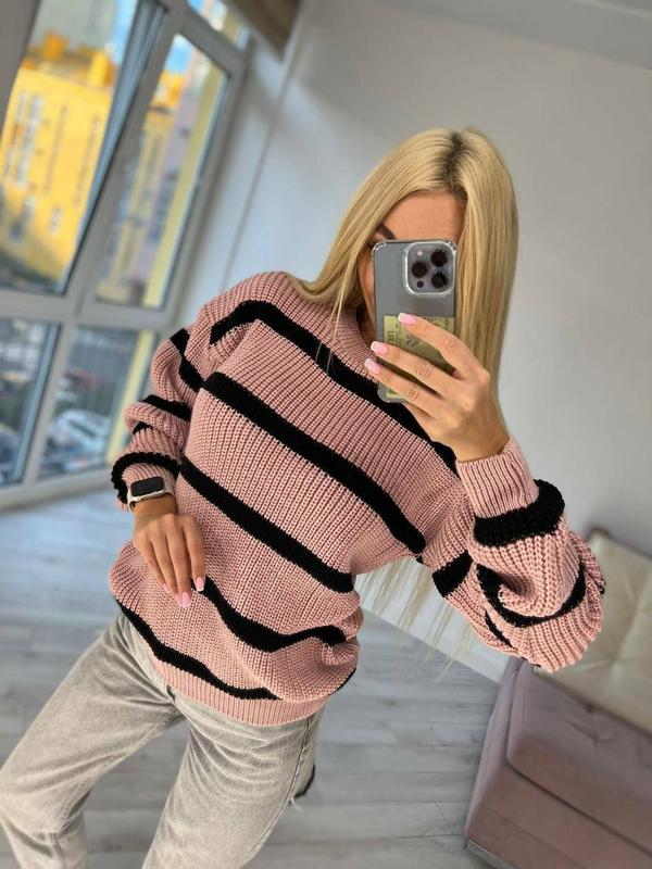 Cветр Модель 5011/modn Розмір універсал 42-48 Склад 70% вовна, 30% акрил. Ціна 900грн Кольори: молоко з чорною смужкою, молоко з пудровою смужкою, чорний з пудровою смужкою, бузок з молочною смужкою, пудра з чорною смужкою, джинс з молочною смужкою Вязка дуже гарно тягнеться Довжина 62-64 см, ширина 51-67 см, довжина рукава 72 см від горловини #vsegdamodno