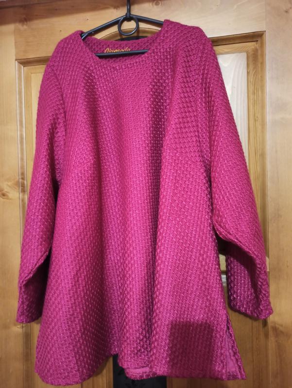 довжина 91 см спина ( від плеча до плеча) 46 см довжина рукава від плеча 70 см об'єм рукава від пахви 60 см об'єм рукава в низу 30 см об'єм під пахвами 170 см об'єм по низу 204 см з боку внизу розрізи 15 см тканина середньої щільності