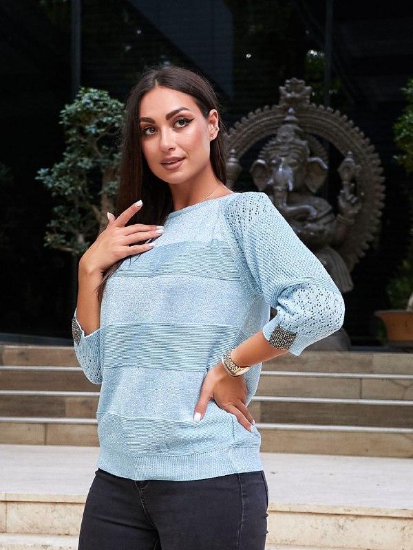 Свитер полубатал. Модель 1765. Пр-во Турция. Машинная вязка С люриксовой нитью. Ог до 112см. Длина 65см. Рукав 3/4. Длина рукава от шеи 50см. На рукаве камушки. Цвет:чёрный, серый, Голубой, Размер оверсайз 46--52. Цена 620