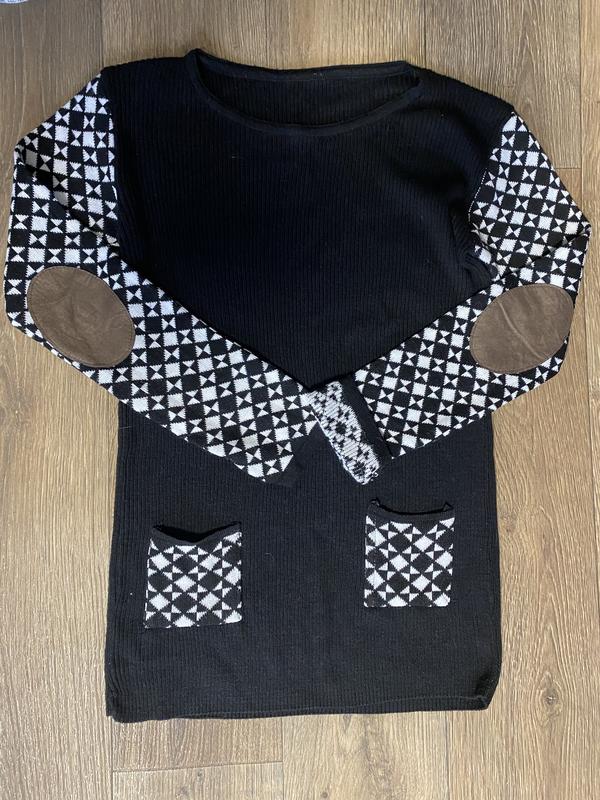 Теплий светрик з принтованими рукавами та карманчиками. Пог - 42 см, довж рукава - 57 см. Добре тягнеться