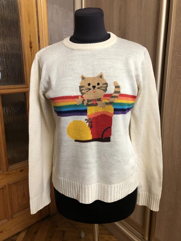 Светр вантажний , в дуже гарному стані. Бірочка зі складом зрізана, точно пам’ятаю, що має в складі вовну. Другого такого точно не знайдете ;) Розмір М, може бути і на С Заміри Ширина підмишками 44 Довжина рукава 60 Довжина виробу 54