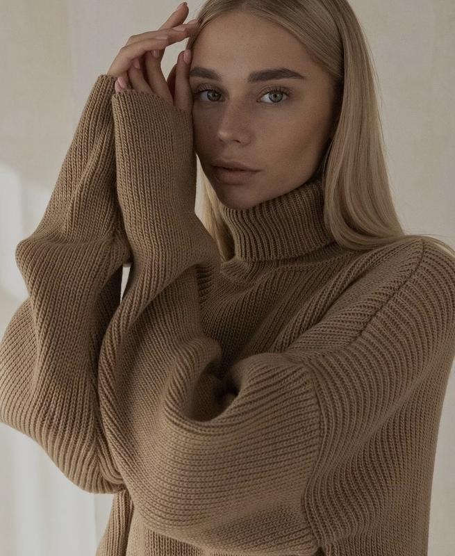 Светр оверсайз,колір кэмэл Підійде на S-XL Довжина светра 70 см Довжина рукава від шва 51 см Вовна 40% Мохер 10% Акрил 50%