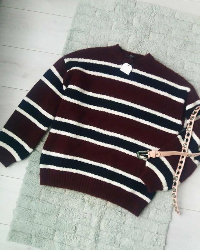 Тепленький світер а полоску ◼розмір вказано S, підходе більше на М/L Довжина 65 см, ПОГ 56 см, ПОТ 54 см, низ резинка 46 см ◼ тканина: 69% акрил, 29% полиестер, 2% полиамид Тянеться