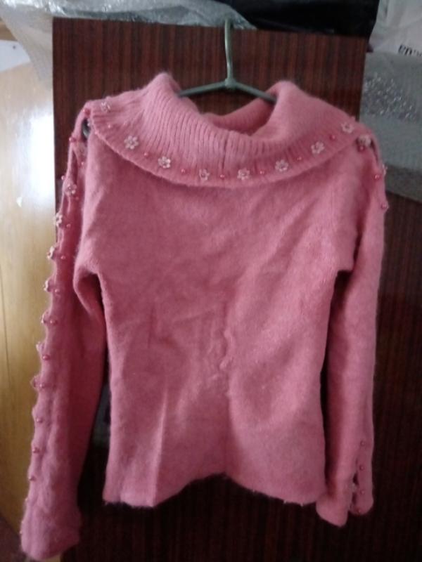 розмір укр 46-48; ангора; воротник хомут; є катишкі підпахвами; горловина =32см; дліна =60см; дл.рукава =64см; поГ =43см; рукав в біцепсі =13см.