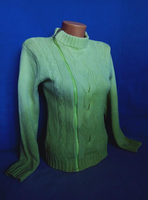--Кофта на блискавці в дуже гарному стані. --Без плям, дірок та катишів. Блисківка відмінно працює, але відсутній один зубчик. --Колір: салатовий омбре (градієнт). --Кофта тепла, відмінно зігріває взимку. Склвд: 100 % полієстр. --Спереду красива в"язка косами. --Розмір наш 44-46, кофта тягнеться в ширину. --Виміри: півобьєм грудей-46, тягнеться до 55, півобьєм талії-40. тягнеться до 49, півобьєм низа-45, тягнеться до 54, довжина від плеча до низа-58, плече-11,5, рукав-58, ширина плечей-39 см. Пересилаю Укр і Новою Поштами.