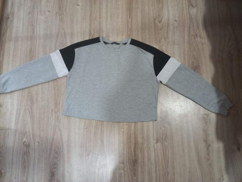 Укороченный свитер. Рукава черно белые,серые. Размер s. Пишите буду рада помочь.