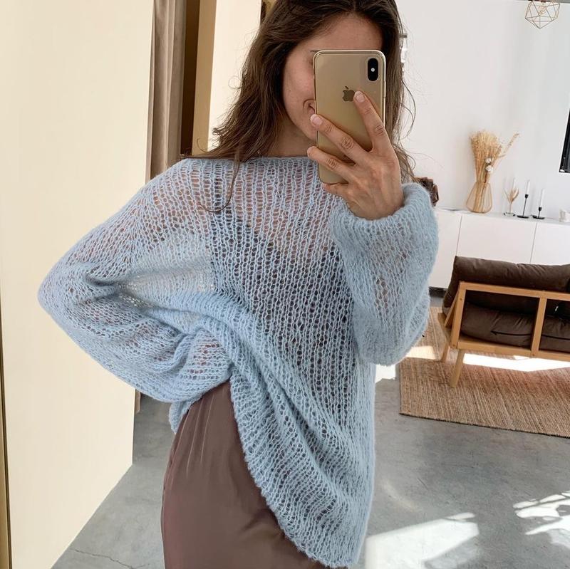 Воздушный джемпер-паутинка. Легкий, нежный, подходит для чувствительной кожи не колит и не вызывает раздражения. В составе альпака и шелк.