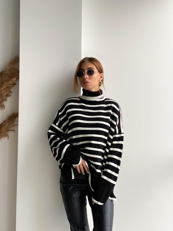 Смугастий светр oversize Розмір : ONE SIZE Кольори: чорний у білу смужку, білий у чорну смужку НЕ ДРОПШИПІНГ Є обмін та повернення Оплата на карту Mono/Privat24 або безпечна оплата "Shafa" Доставка: Нова пошта, Укрпошта