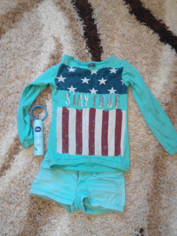 Баєчка бірюзового кольору з модним принтом на переді. Дефектів немає,матеріал приємний на дотик,100% котон.При потребі можу зняти заміри,можу скинути фото на тілі та ще додаткові фото. Пишіть, питайте - з радістю відповім на всі запитання. Пересилаю укр поштою та новою поштою за рахунок покупця.Дивіться інші мої оголошення.