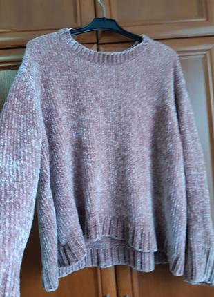 Светр ніжно-рожевого кольору, в'язаний велюр Розмір ХЛ, але може слугувати і як оверсайз Дуже м'який, приємний до тіла та теплий