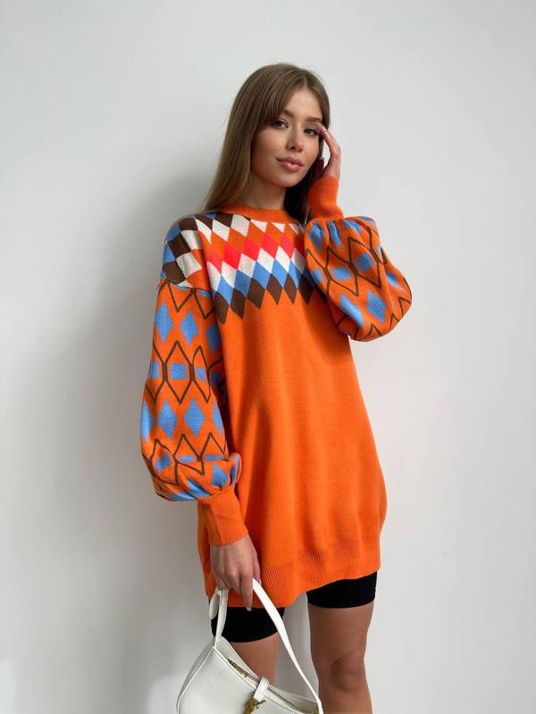 Помаранчевий светрик з візерунком🧡 Будь яскравою цією осені😍 Мод:997 ans Розмір: оверсайз Тканина: бавовна з акрилом Туреччина #светр 💸Ціна 830 грн