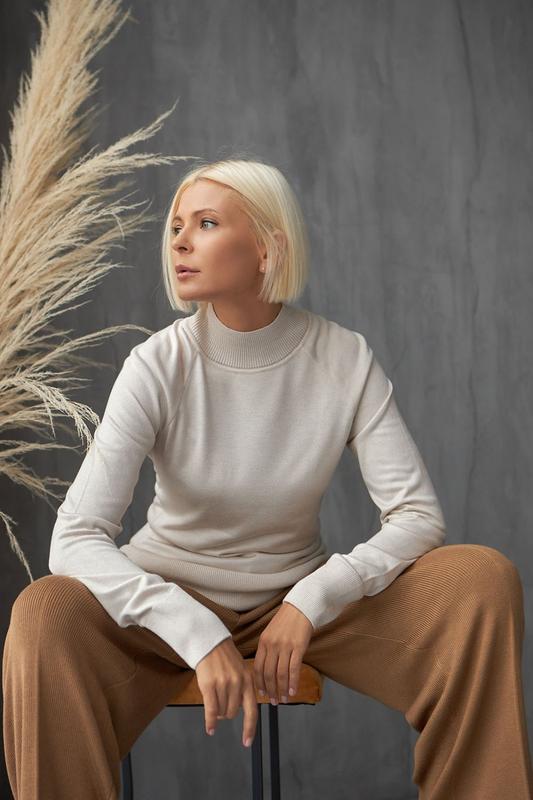 Базовый свитер свободного кроя из шелковистой вискозной пряжи премиум класса. Изделие имеет комфортный рукав покроя реглан и эластичный в два сложения воротник-стойку.