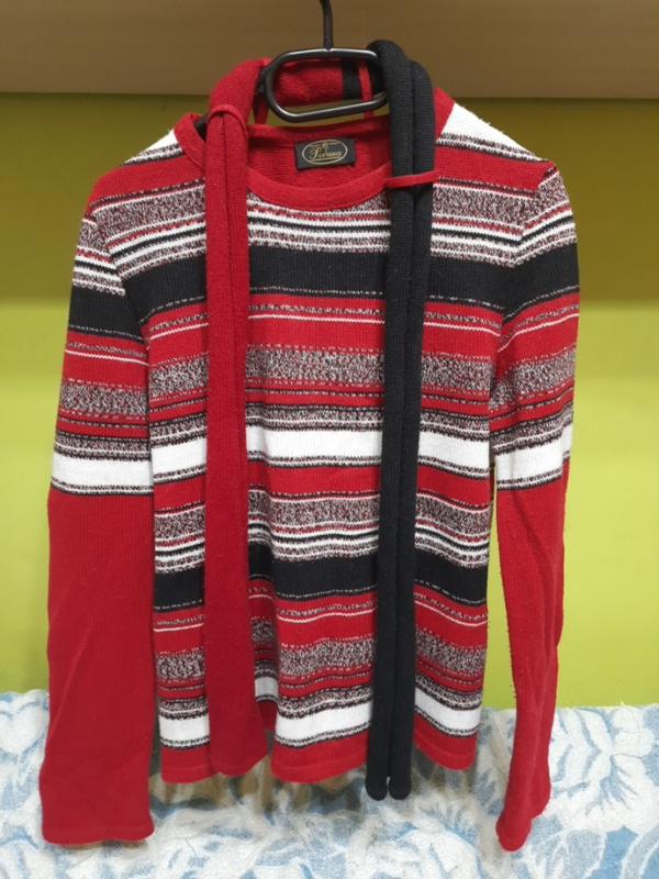 Чудовий, а саме головне теплий светр з шарфом від Робіка. Заміри: Підмишками - 51 см. Довжина - 56 см. Внизу - 53.