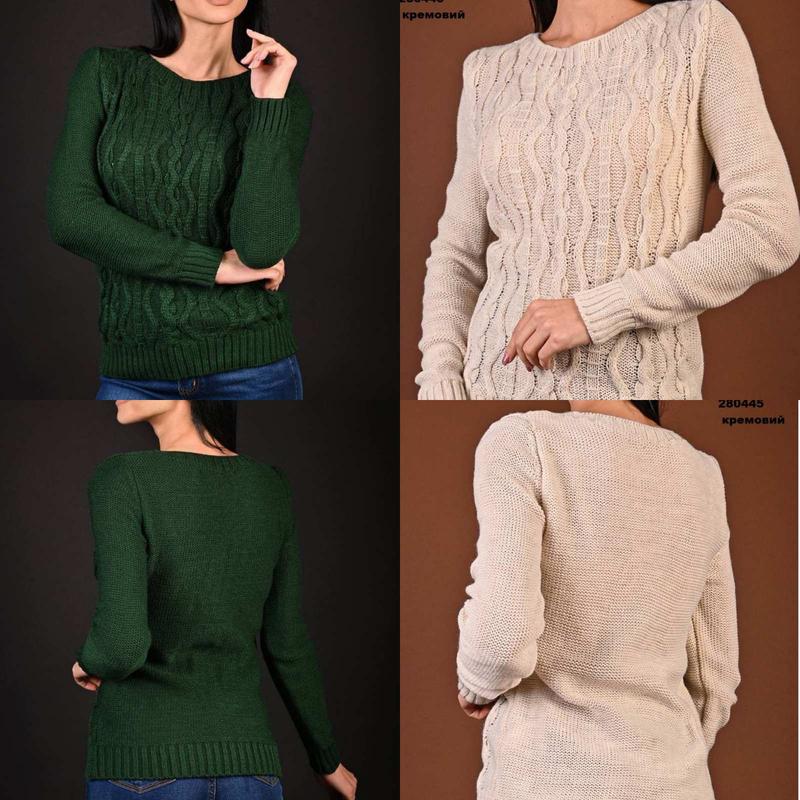 ✨СВЕТР ЖІНОЧИЙ✨ В наявності лишилися в молочному та чорному кольорі. 🟣Країна виробник: Туреччина 🟣Склад: котон 85% поліестер 15% 🟣Матерiал: машинна в'язка 🟣Розмір: універсальний 🍂ЗАМІРИ: Розмір: б/р Ширина плечей: 32 см. НО грудей: 35 см. НО талії: 33 см. НО стегон: 34 см. Довжина рукава: 55 см. Довжина виробу: 59 см.