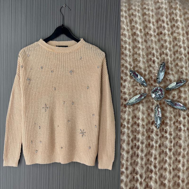 🔥🔥490грн🔥🔥 Вязаний светрик Розмір XS,але буде на М Довжина 63см Груди 53см Рукав від горловини 68см Якість💣фасон👍камені сяють В'язка добре тягнеться, колір персик М'який та дуже приємний до тіла 😍