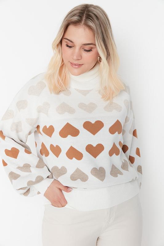 Жіночий светр oversize з сердечками Trendyol - високий комір - об'ємні рукави - модель PLUS SIZE 🌱колір: beige | mint 🌱розмір: XL | XXL | 3XL | 4XL | 5XL - Параметри моделі на фото: 175 см | 98х84х116 - XXL/44 🌱склад: 100% акрил _________________ * Доставка протягом 20-25 робочих днів після замовлення. У вартість вже включена доставка з 🇪🇺 Ви оплачуєте доставку по Україні поштою.