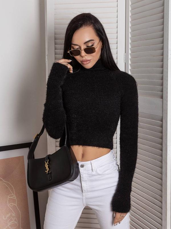 Стильний теплий кроп светрик з горловиною з м’якої пряжі з додаванням нитки травки ▪️Склад: 70% акрил, 30% Шерсть ▪️Кольори: Молочний Чорний Кемел ▪️Розмір: 42-46