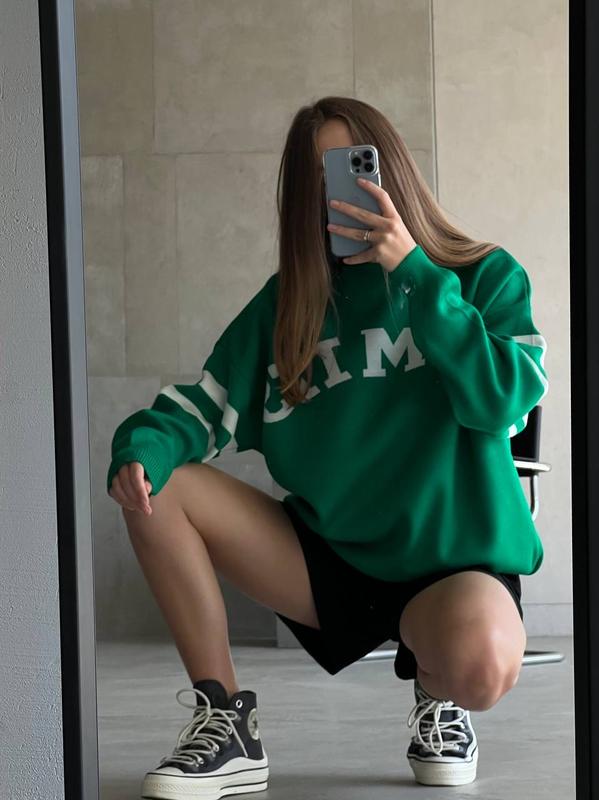 Трендовий зелений вільний светр, тепла кофта, світшот